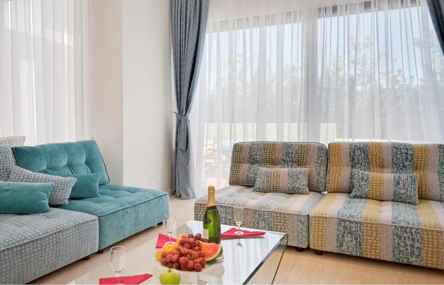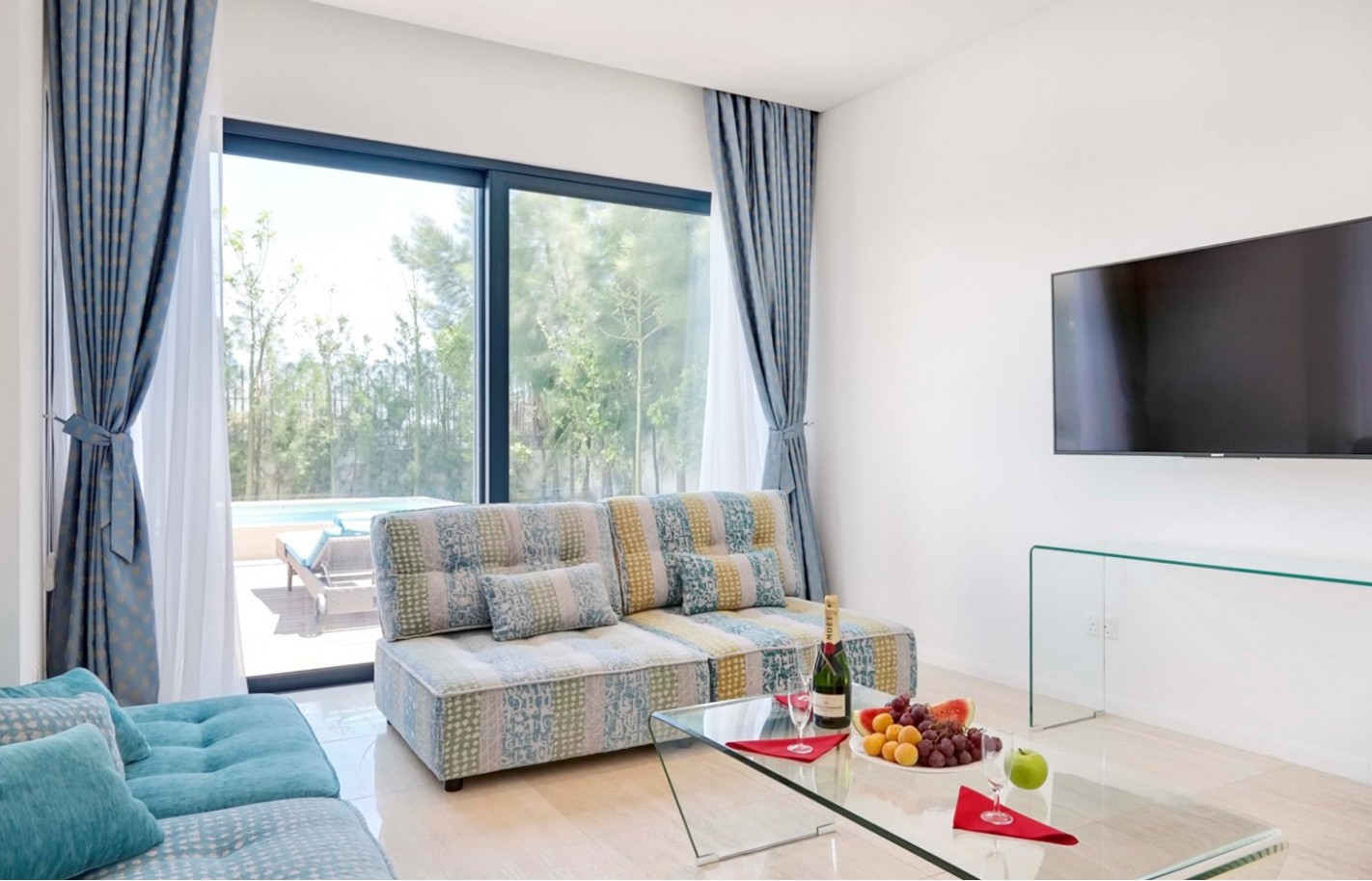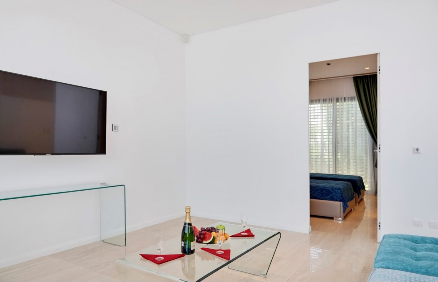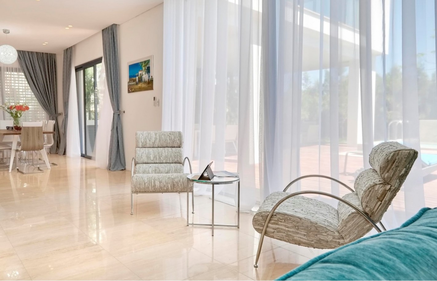 Просторные 340 м² включают четыре спальни и четыре ванные, светлую гостиную с оборудованной кухней. Большие окна и балконы наполняют дом естественным светом и открывают виды на море и окрестности.