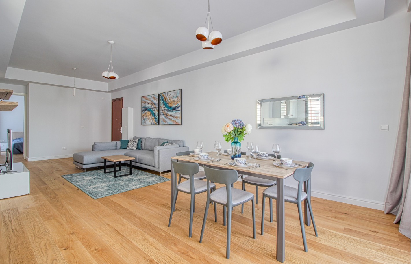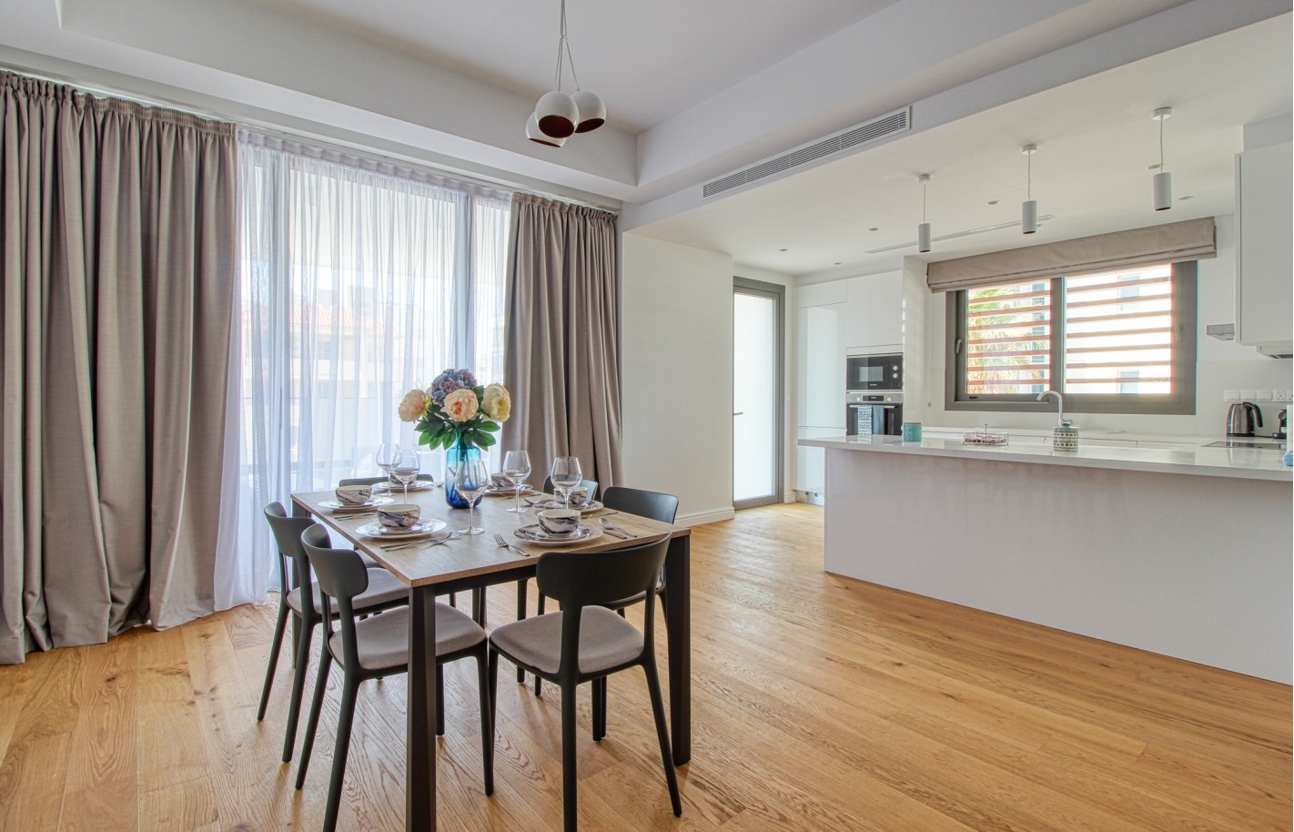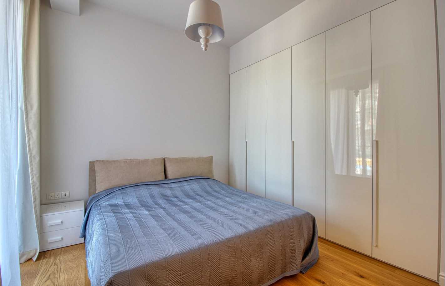 Внутри квартира с тремя спальнями и двумя ванными комнатами обладает продуманной планировкой, большими окнами и балконом, что создаёт светлое пространство. Качественная отделка и оснащение — обустроенная кухня, встроенные шкафы и современные инженерные решения.