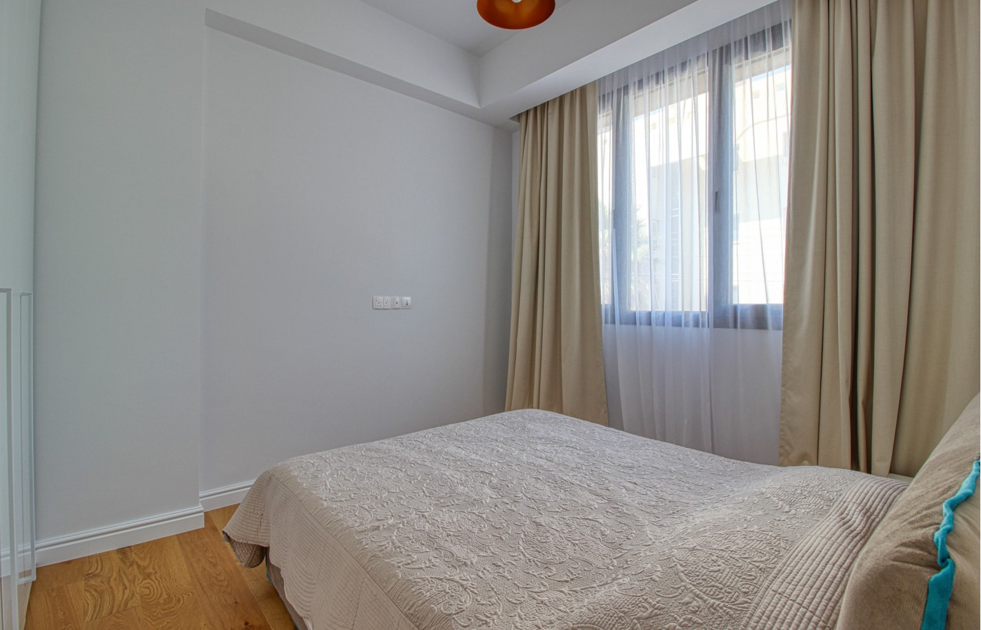 Апартаменты расположены в современном комплексе с общей территорией, включая бассейн и ухоженные сады. Здание отличается качественной постройкой и надежной системой безопасности, обеспечивая комфорт и приватность.