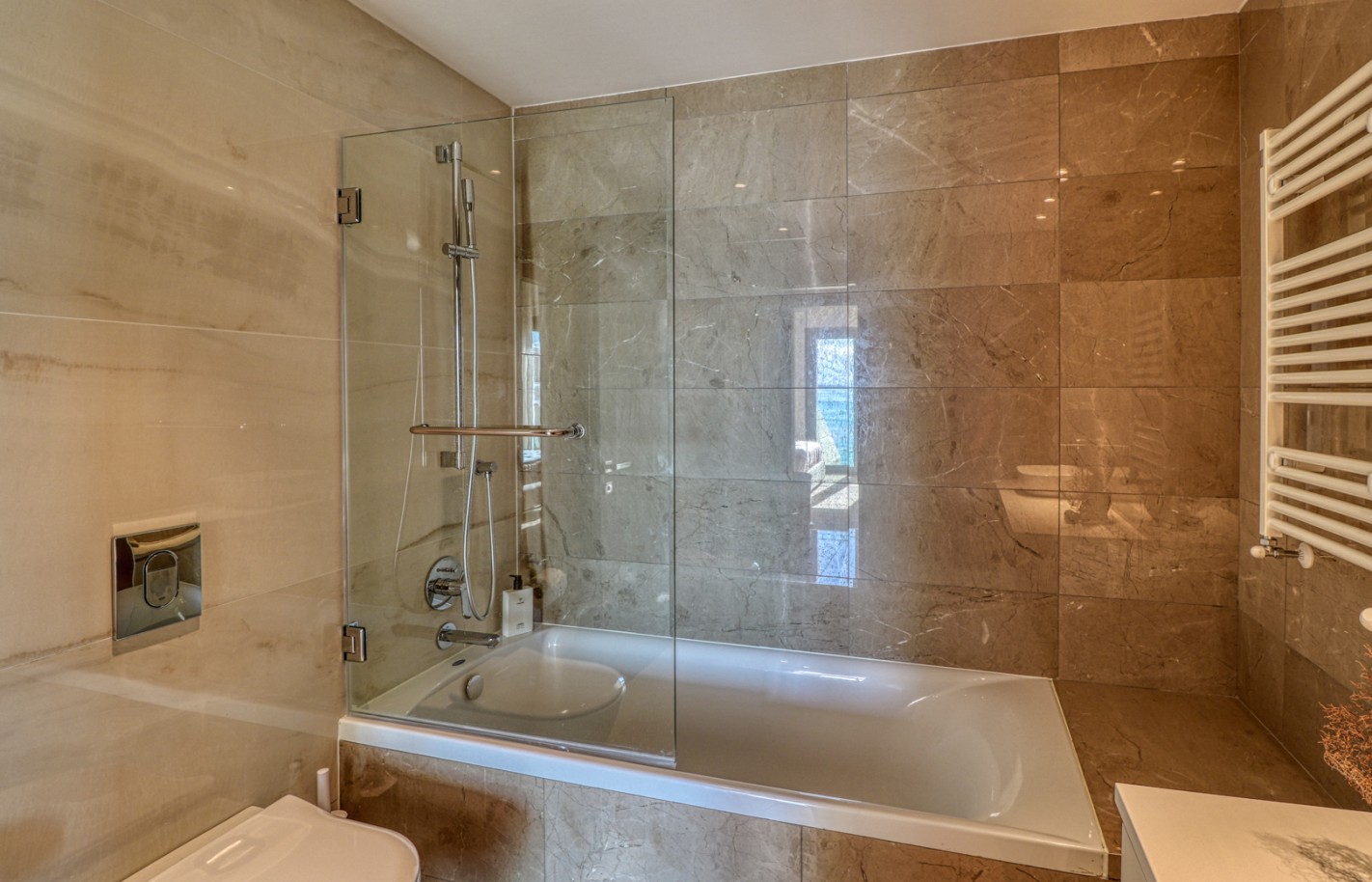 Удобства: Кондиционер · Пол с подогревом · Парковка · Кладовая · Балкон/терраса · Обустроенная кухня · Посудомоечная машина · Стиральная машина · Холодильник · TV · Система безопасности