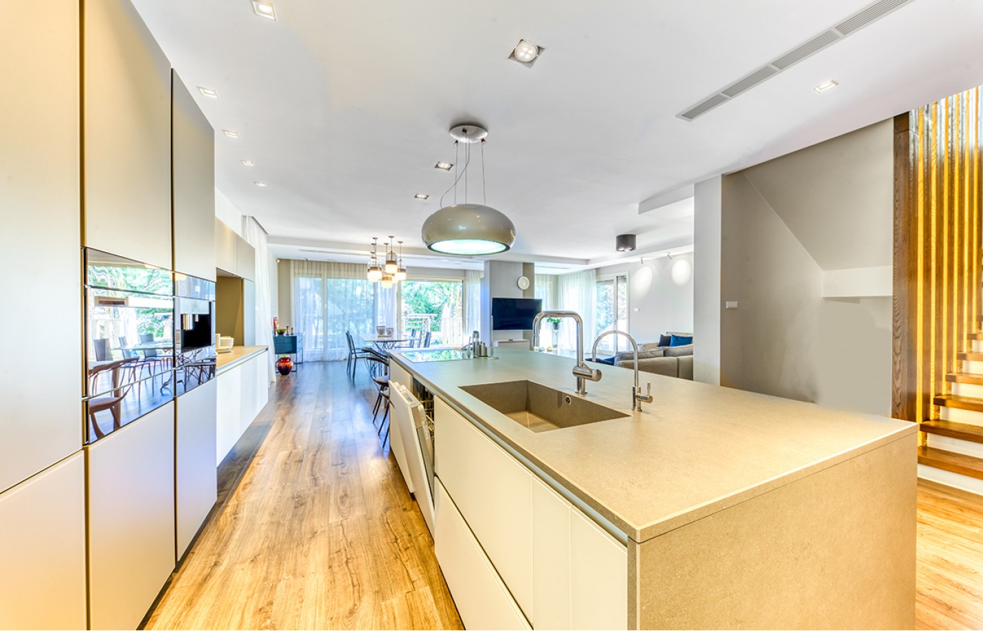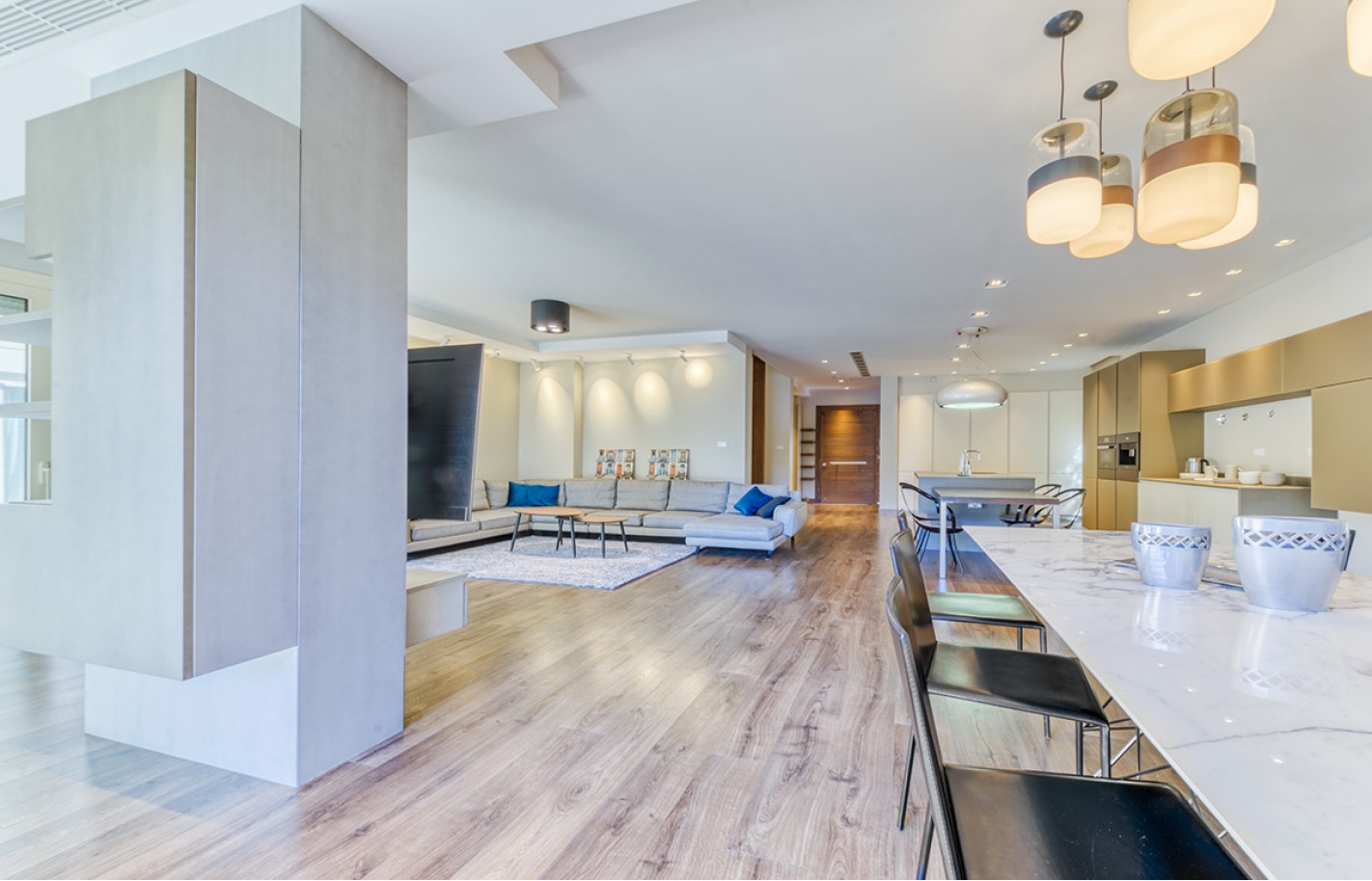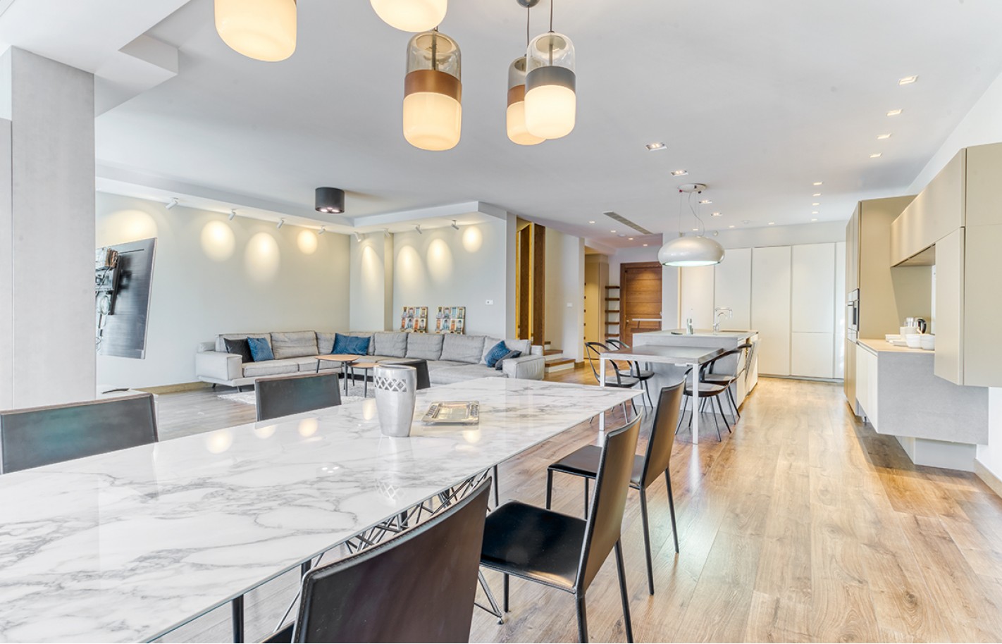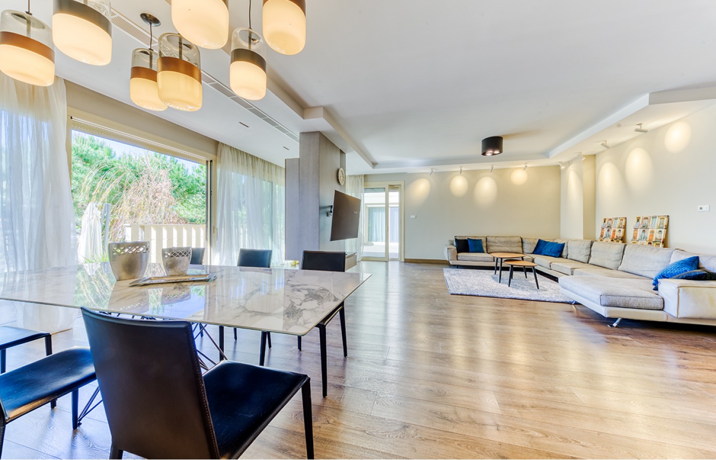 Просторные пять спален и четыре ванные комнаты обеспечивают комфортное размещение. Обустроенная кухня, балконы и техническое оснащение, включая систему кондиционирования и подогрев полов, делают проживание удобным и функциональным.