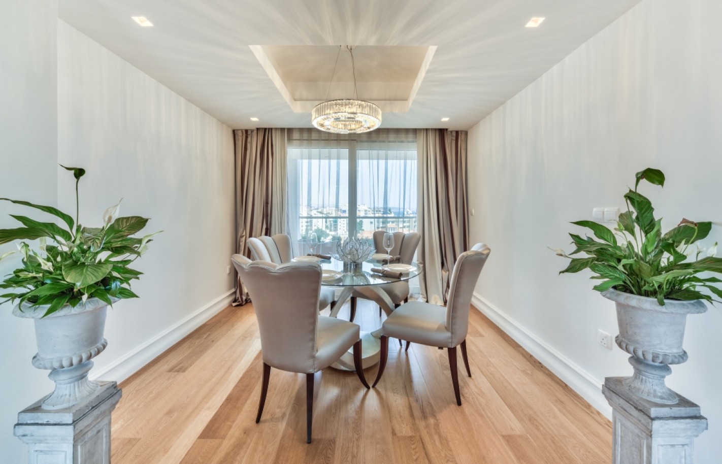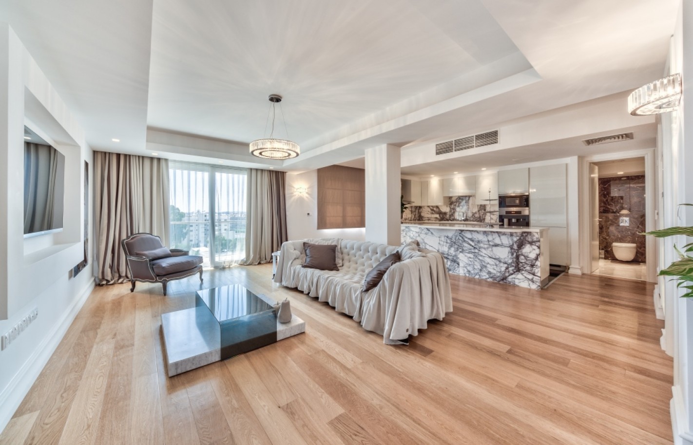 Внутреннее пространство площадью 117 м² включает две спальни и продуманную планировку с полностью оборудованной кухней и техникой. Частично или полностью меблированные апартаменты создают готовую к проживанию атмосферу с кондиционерами и полом с подогревом.