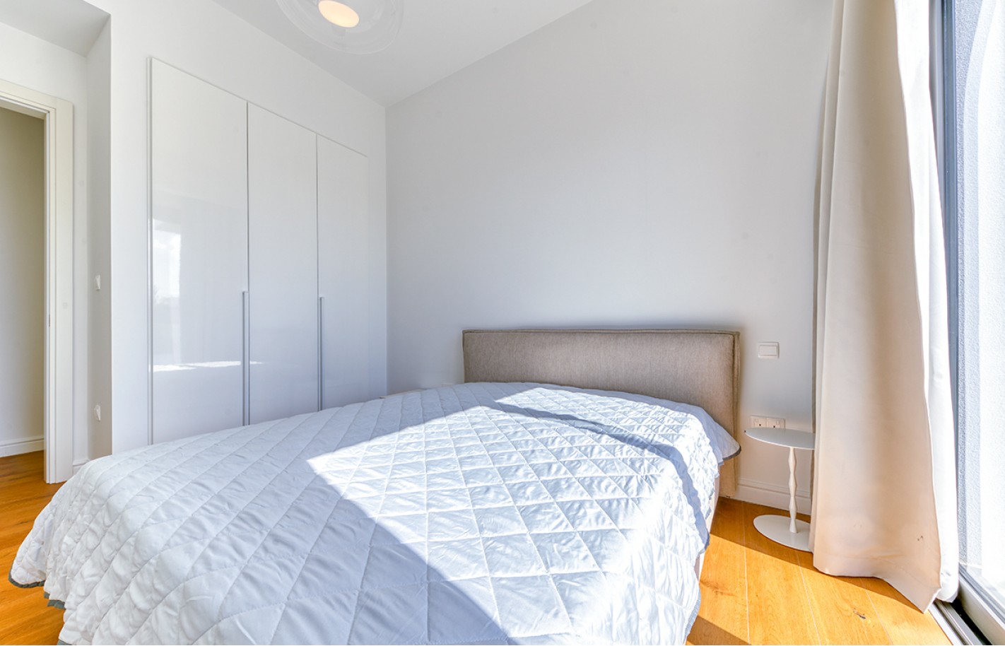 Просторная планировка с тремя спальнями и большими окнами наполнена естественным светом. Балкон предлагает приятный вид, а предусмотренное оснащение включает кондиционер, подогрев пола и современную кухню.
