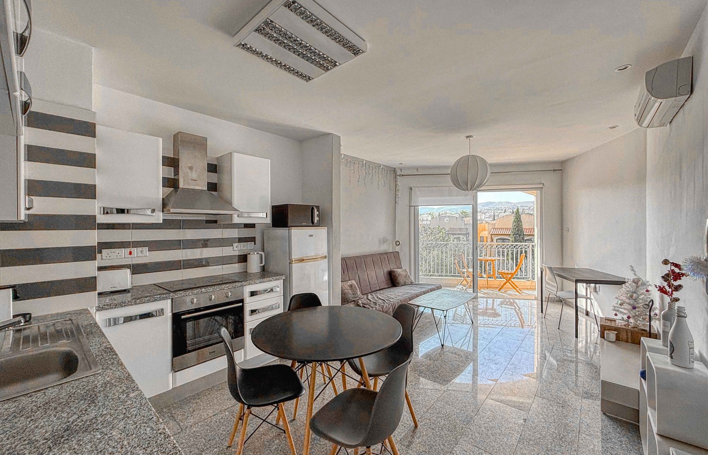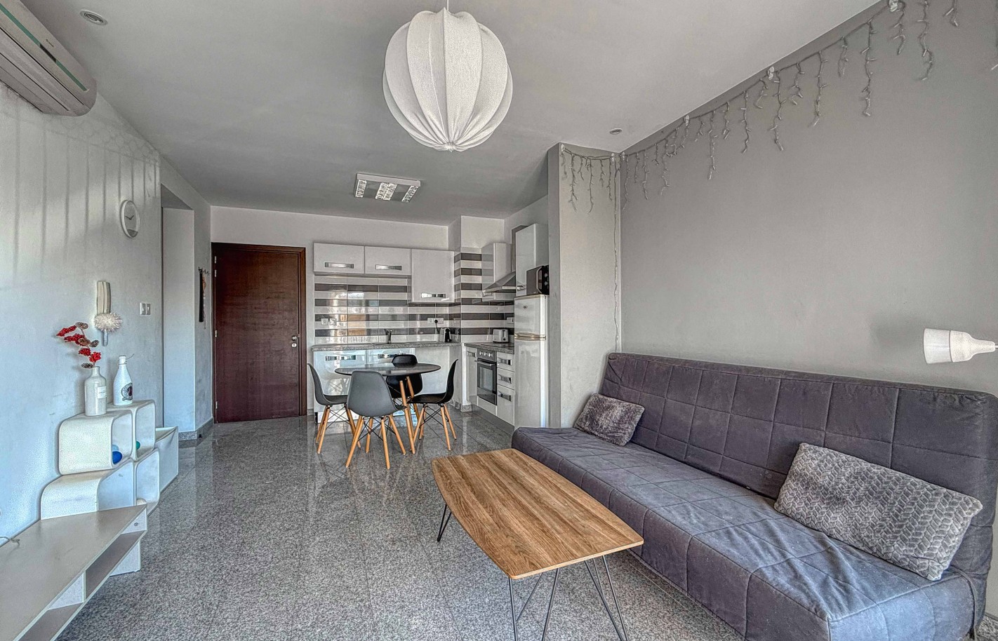 Внутри апартаментов одна спальня, просторная ванная и функциональная планировка, позволяющая использовать каждый квадратный метр с комфортом. Квартира полностью меблирована и оснащена современной техникой, включая кондиционер и посудомоечную машину, а балкон открывает вид на окрестности.