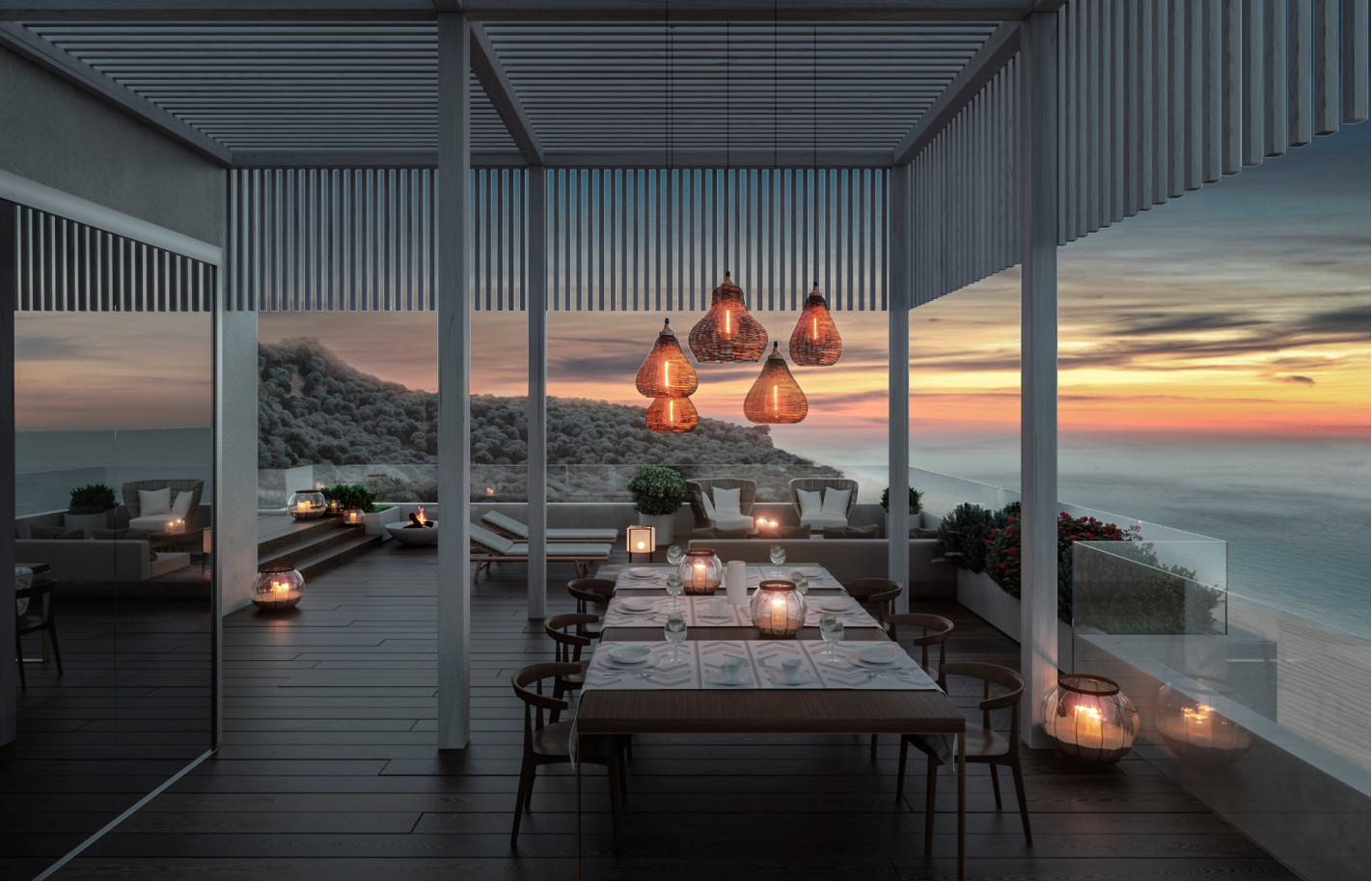 Внутри апартаментов просторная планировка с тремя спальнями и тремя ванными комнатами, оборудованной кухней и балконом с видом на море. Использование качественных материалов и продуманных инженерных решений обеспечивает комфорт и функциональность.