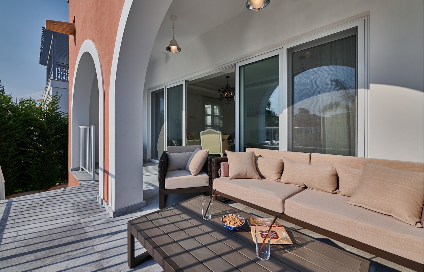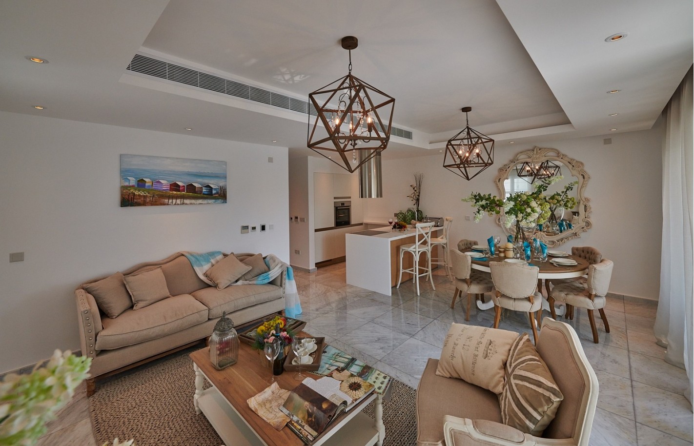 Внутри помещения продуманы для комфорта: четыре спальни, три ванные комнаты, просторные балконы с видом на море и полностью оборудованная кухня, создают пространство для семьи и гостей.