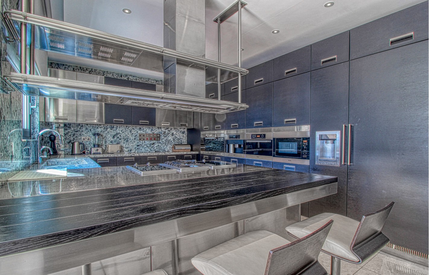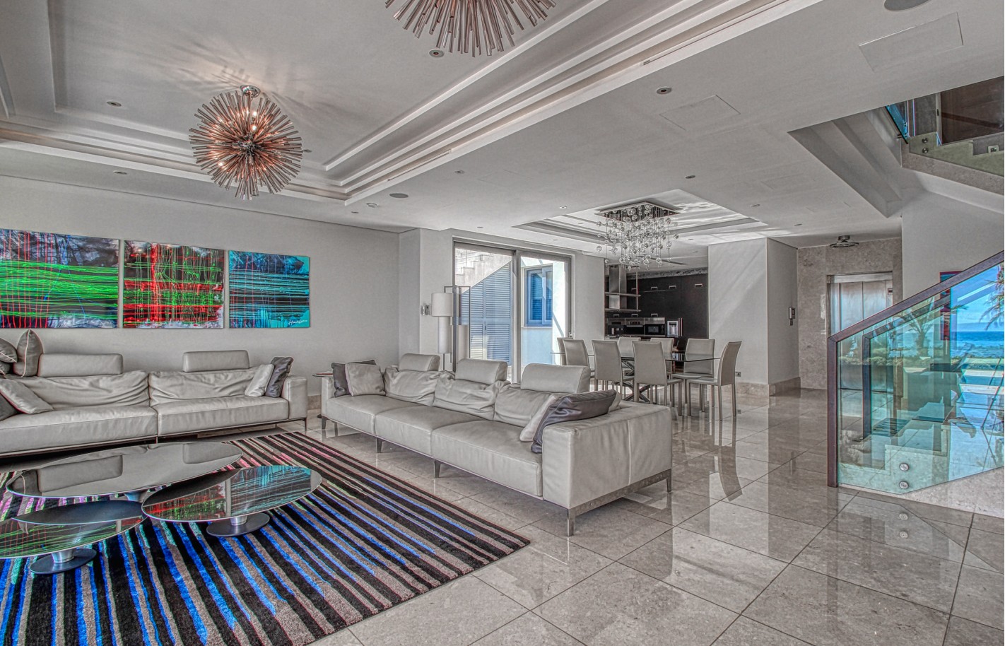 Внутреннее пространство продумано до мелочей: пять спален и ванных комнат, полностью меблированная кухня с техникой, большие окна и балконы обеспечивают естественное освещение и вид на море.