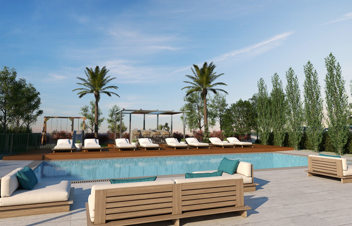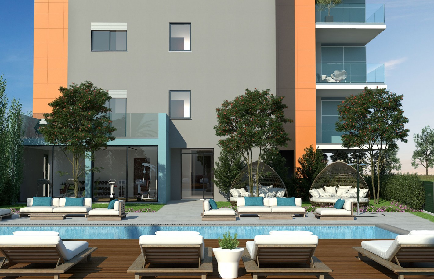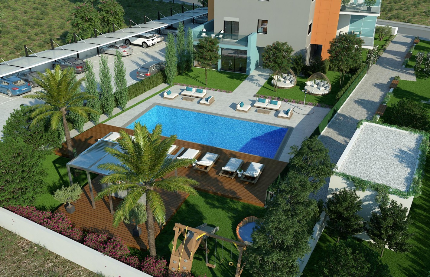 Современный жилой комплекс выполнен с высоким стандартом качества, обеспечивая надежность и безопасность. Общий бассейн и охрана дополняют образ комфортного жилья в престижном районе.