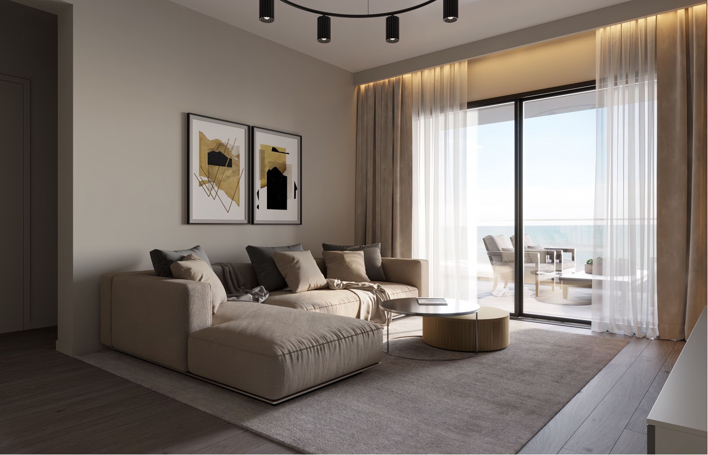 Апартаменты с продуманной планировкой включают три спальни и просторные ванные комнаты. Большие окна и балконы наполняют помещения светом и создают атмосферу уюта.