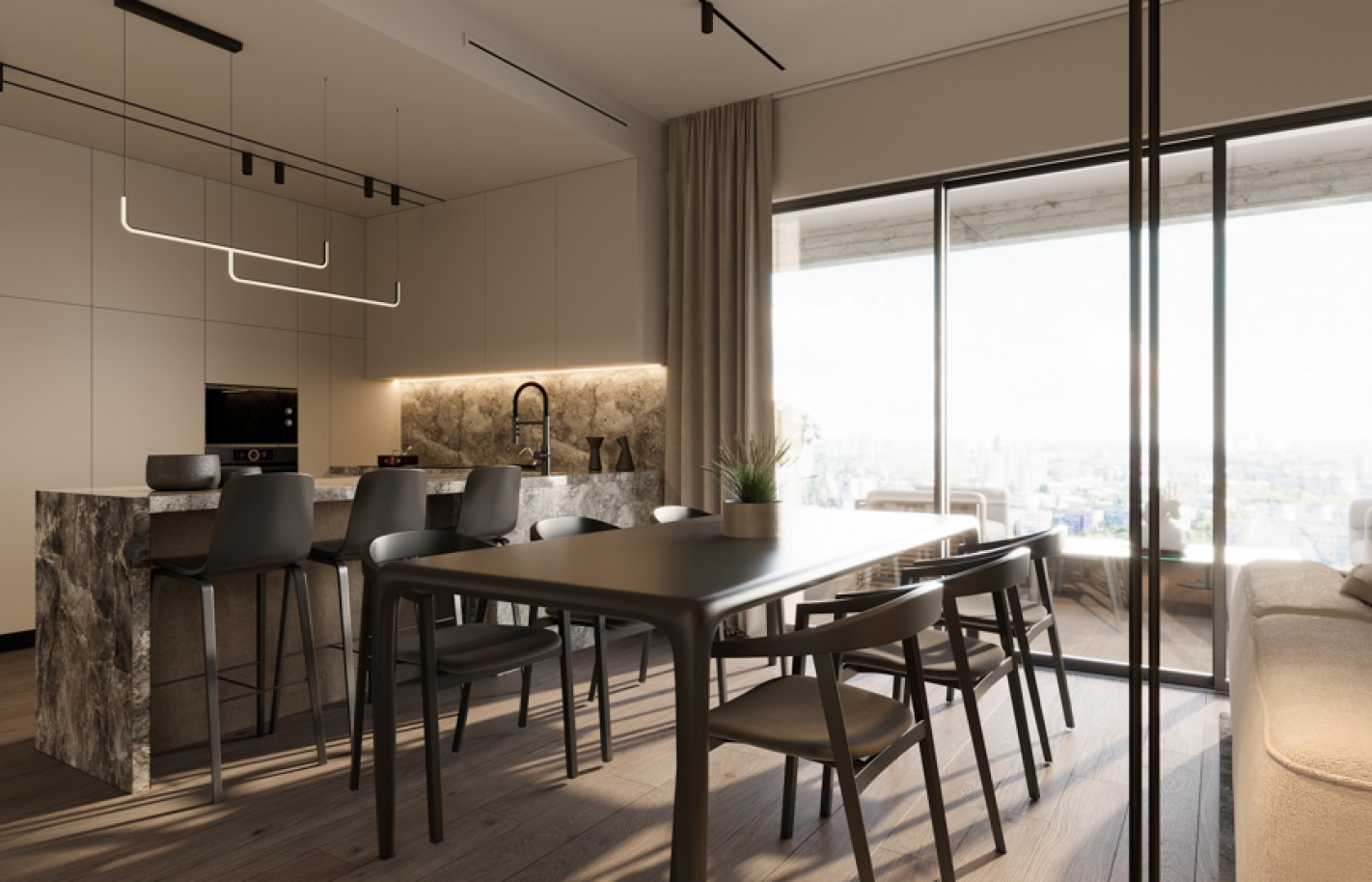 Внутри пентхауса — продуманная планировка с тремя спальнями и двумя ванными комнатами, просторная обустроенная кухня и балкон с видом, наполняющий пространство светом. Частичная мебель добавляет удобства для быстрого переезда.