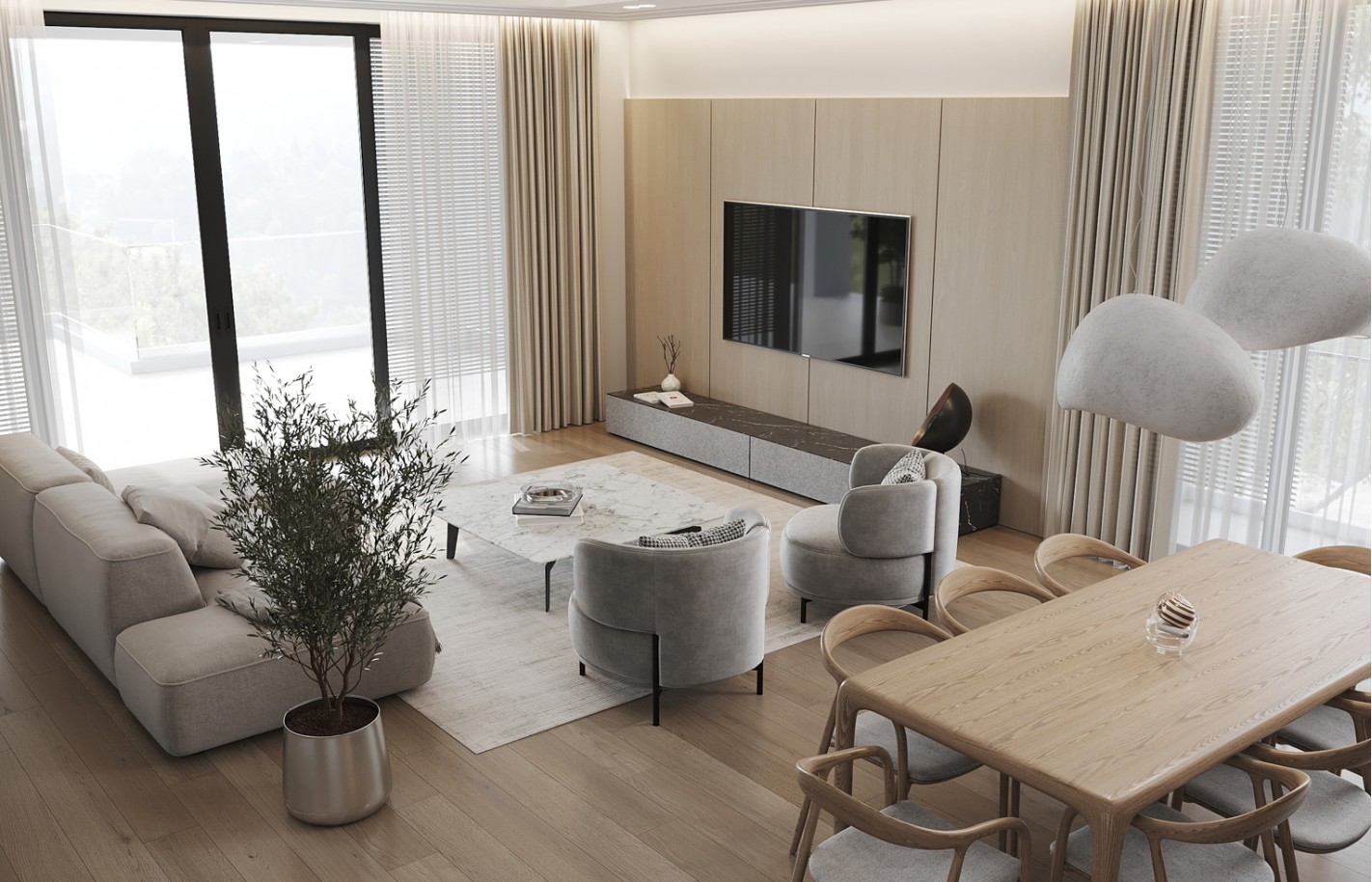 Внутри — просторные 3 спальни и 3 ванные комнаты, светлые помещения с большими окнами и балконами, открывающими панораму окрестностей, а также качественная отделка и удобная планировка.