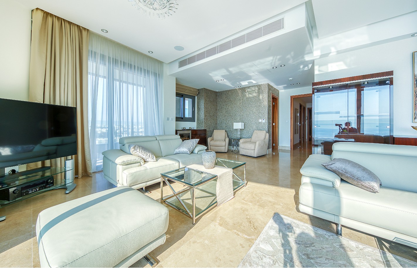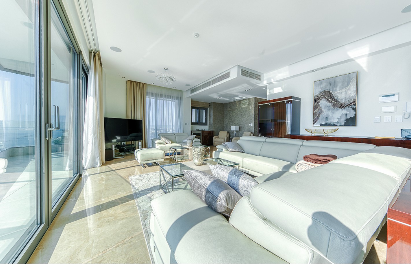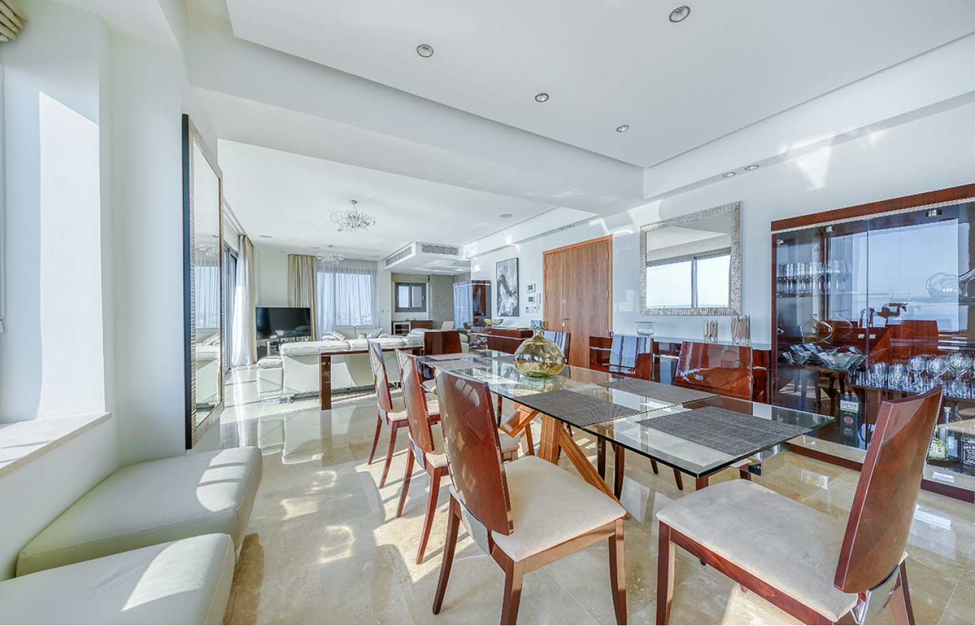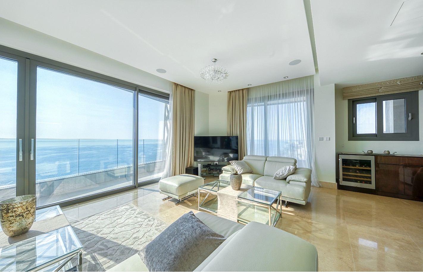 Просторные апартаменты площадью 328 м² предлагают продуманную планировку с тремя спальнями и большими окнами, которые наполняют пространство светом. Балкон открывает вид на море, а качественная отделка подчёркивает статус жилья.