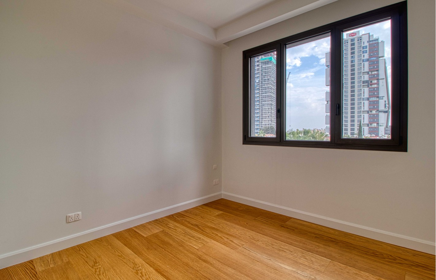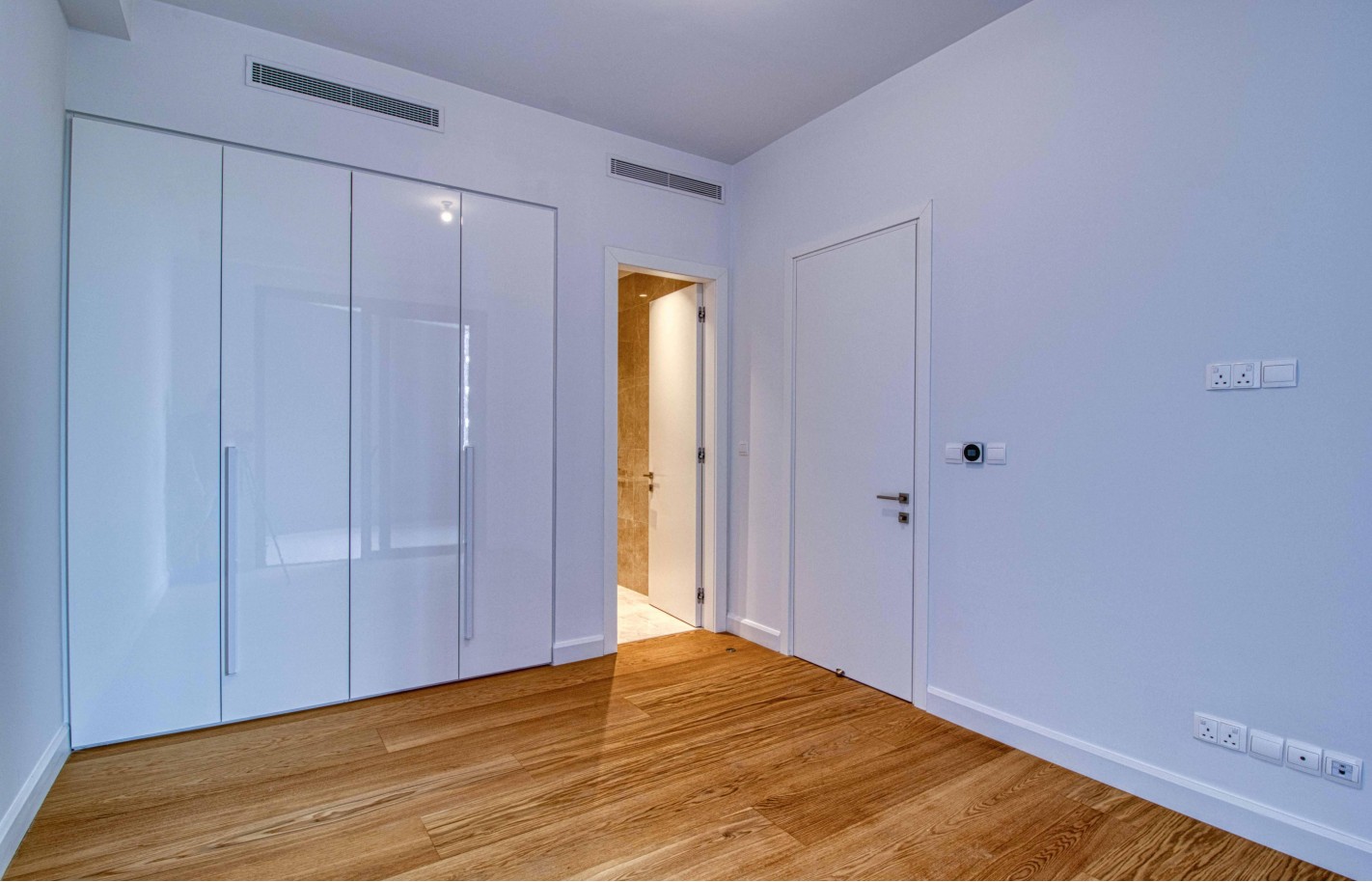 Внутри апартаменты площадью 85 м² располагают двумя просторными спальнями и функциональной кухней с современной техникой. Большие окна и балкон наполняют пространство светом, а встроенные системы отопления и кондиционирования поддерживают комфорт в любое время года.
