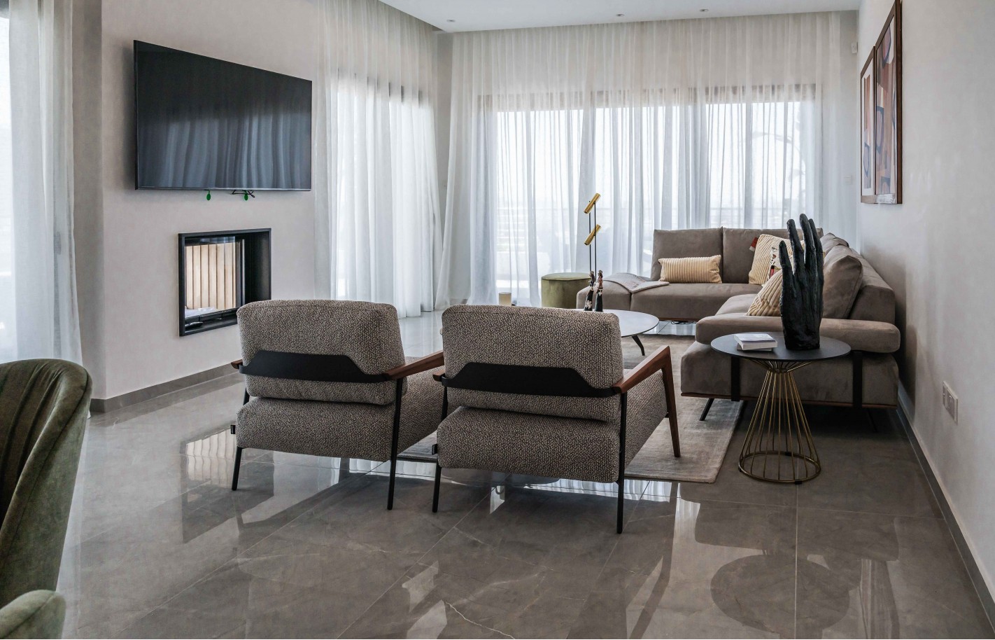 Этот пентхаус в районе Potamos Germasogeia предлагает сочетание удобства городской жизни и близости к морю. В шаговой доступности — всё необходимое: магазины, рестораны и зелёные зоны, что создаёт атмосферу комфорта и уюта.