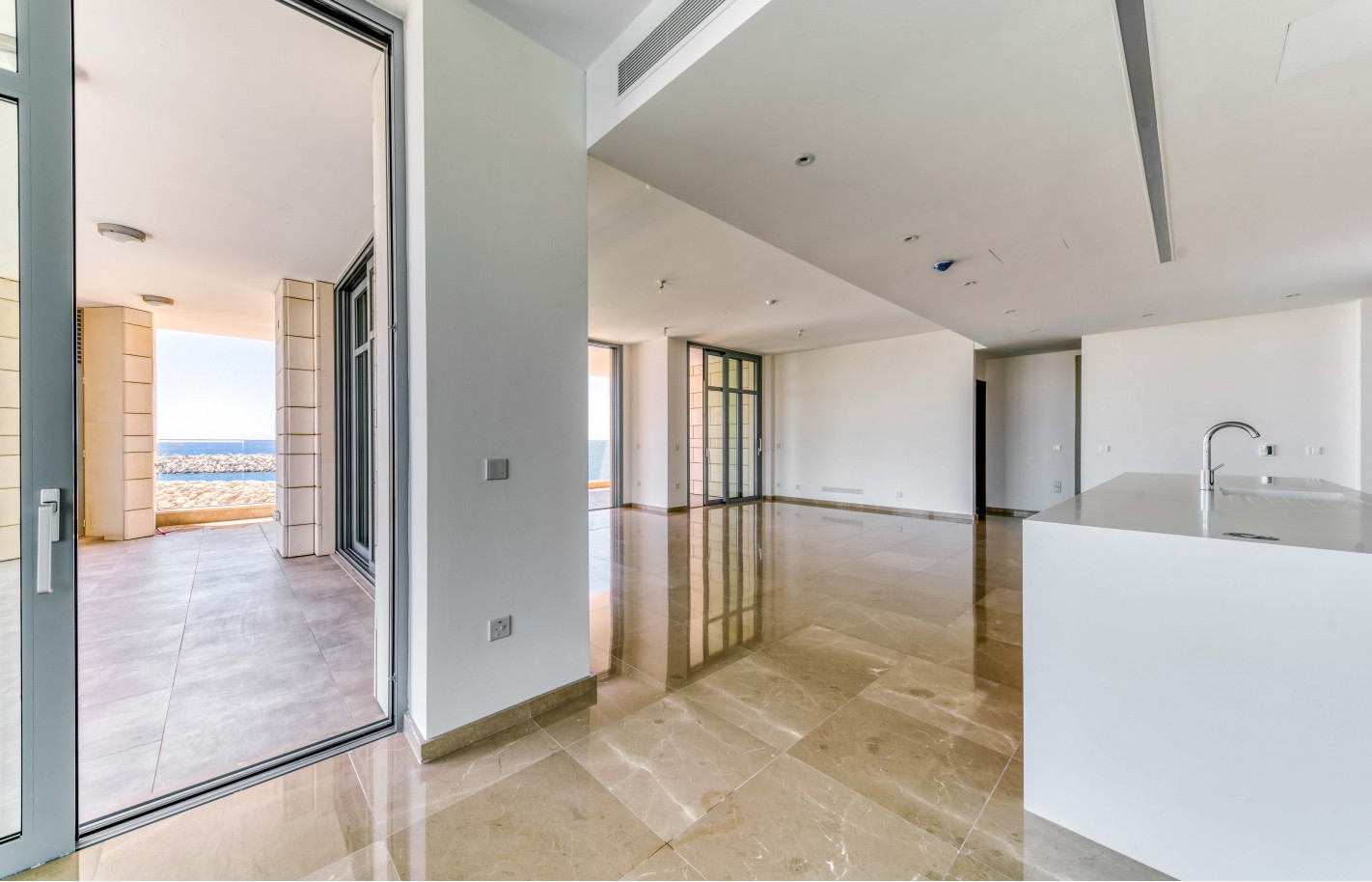 Внутри просторной квартиры 4 спальни и 3 ванные комнаты, выполненные с использованием современных инженерных решений. Большие окна наполняют пространство светом, а оборудованная кухня и балкон с видом на море дополняют образ продуманного жилья.
