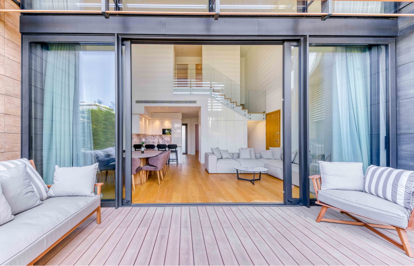 Этот таунхаус — часть современного жилого комплекса с продуманной архитектурой, которая сочетается с качественной отделкой и надежной системой безопасности. Закрытая парковка и общий бассейн добавляют удобств.