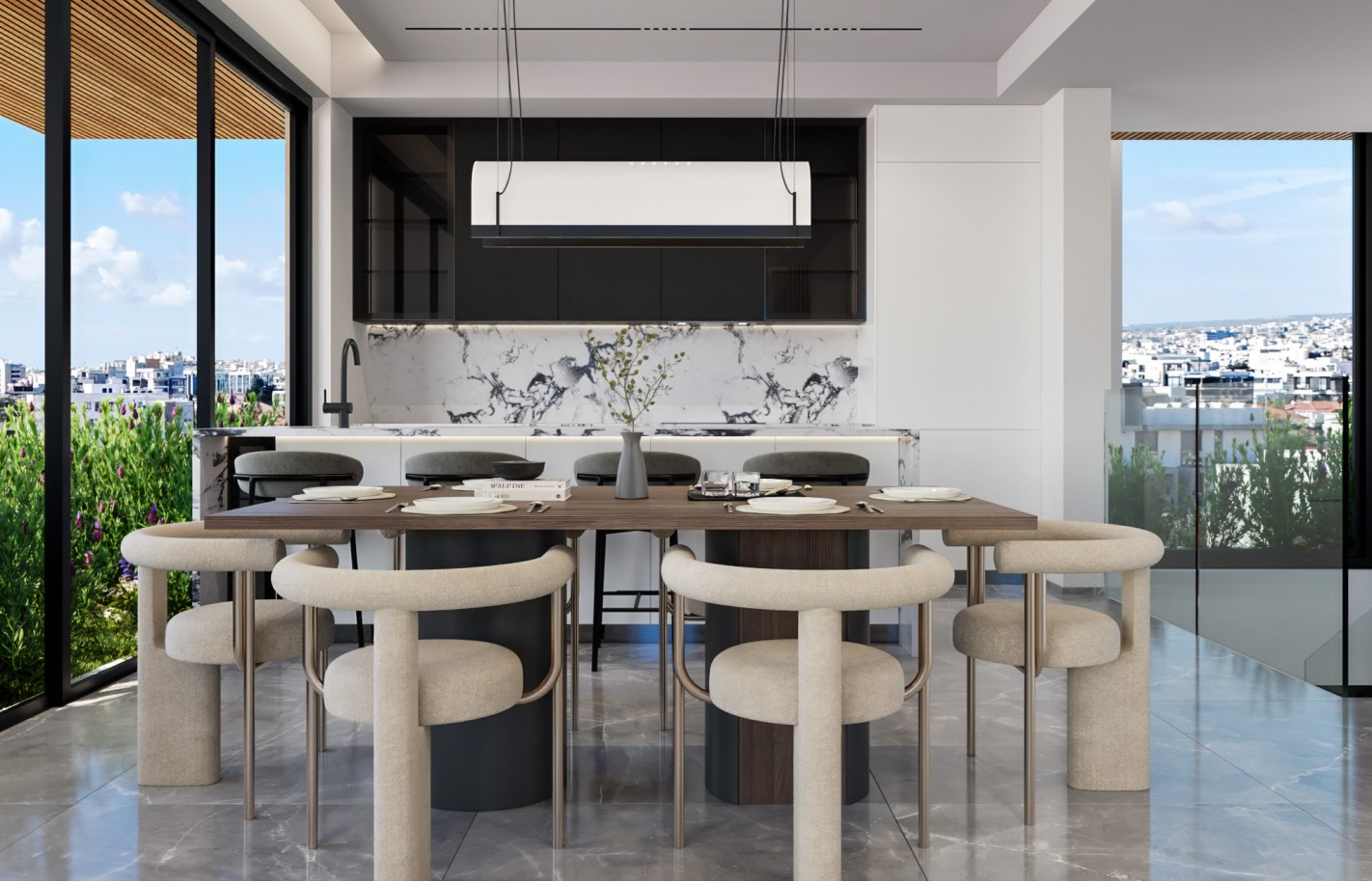 Пентхаус находится в современном жилом комплексе, где качество строительства и архитектура подчеркивают комфорт и приватность. Безопасность и парковка обеспечивают удобство для владельцев и гостей.
